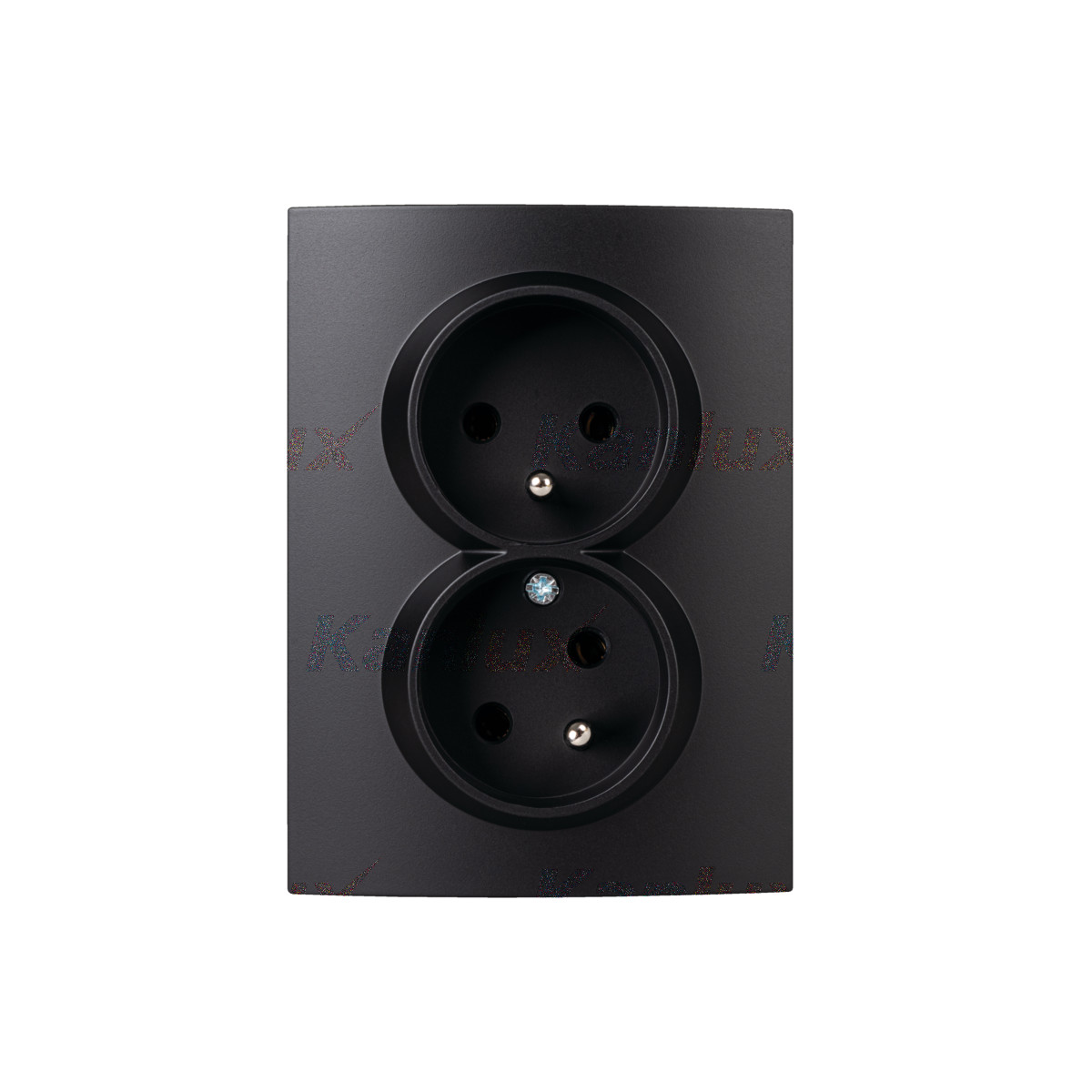 LOGI Zásuvka dvojitá s uzemnením, s clonou, SZF, pootočená, kompletná - čierna matná